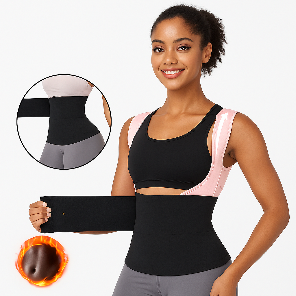 يتضمن مصحّح الظهر لتقويم الكتفين والعمود الفقري، وحزام خصر حراري بطول 4 أمتار لشدّ البطن وإبراز الخصر.
